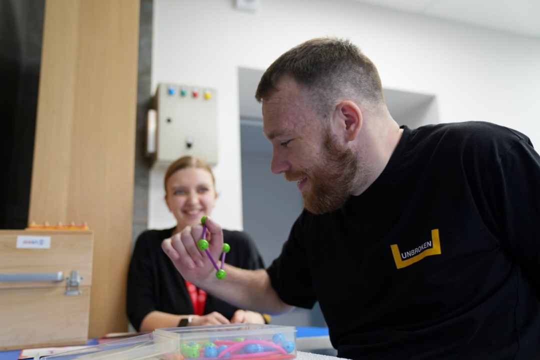 Один із пацієнтів, який лікується в центрі, – колишній військовослужбовець 25-ї окремої десантно-штурмової бригади Юрій Кравченко. На фронті в його автівку влучив ворожий дрон, унаслідок чого боєць утратив ногу.