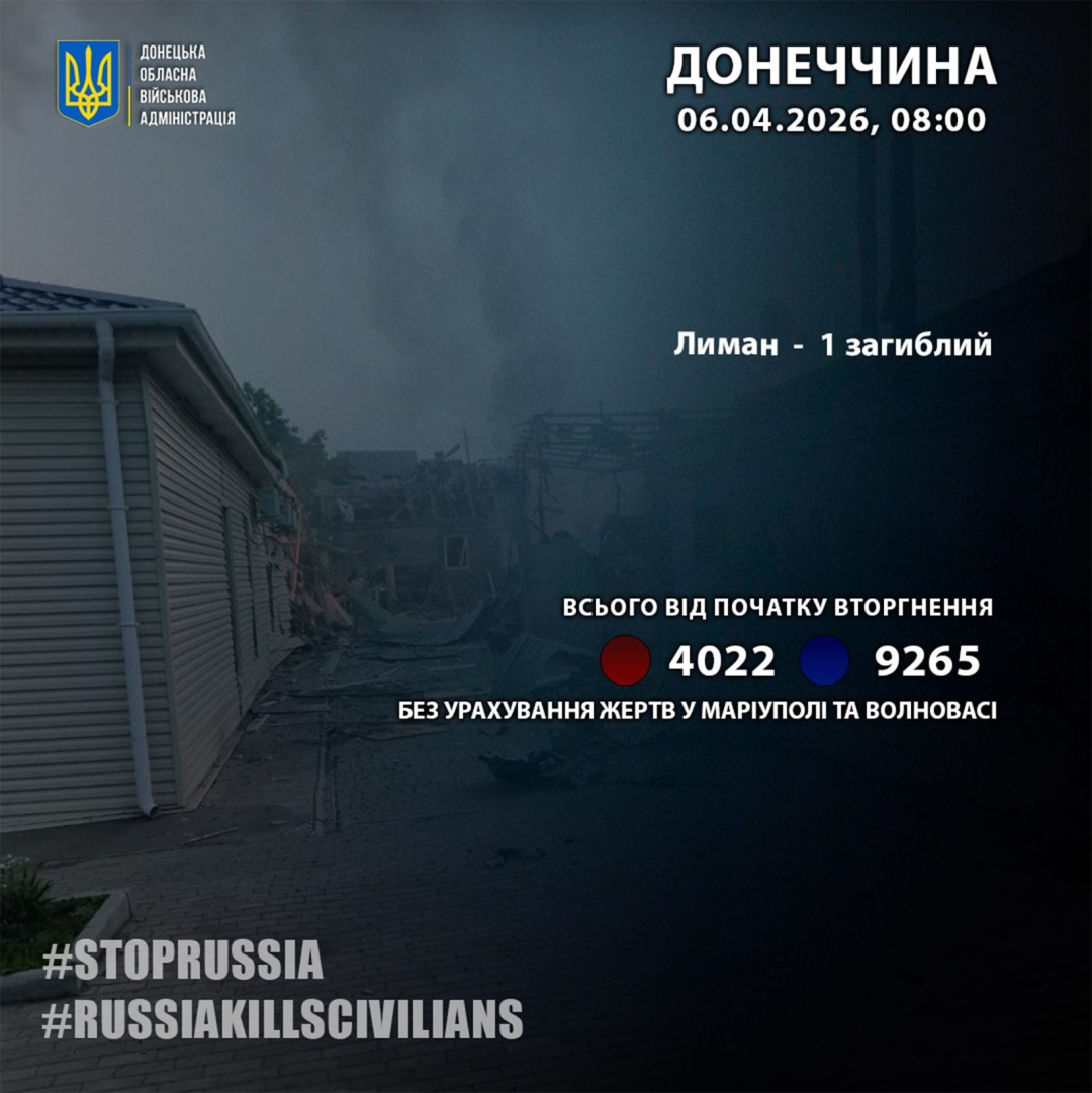 Минулої доби, 5 квітня, російські загарбники вбили одного жителя Донецької області.
