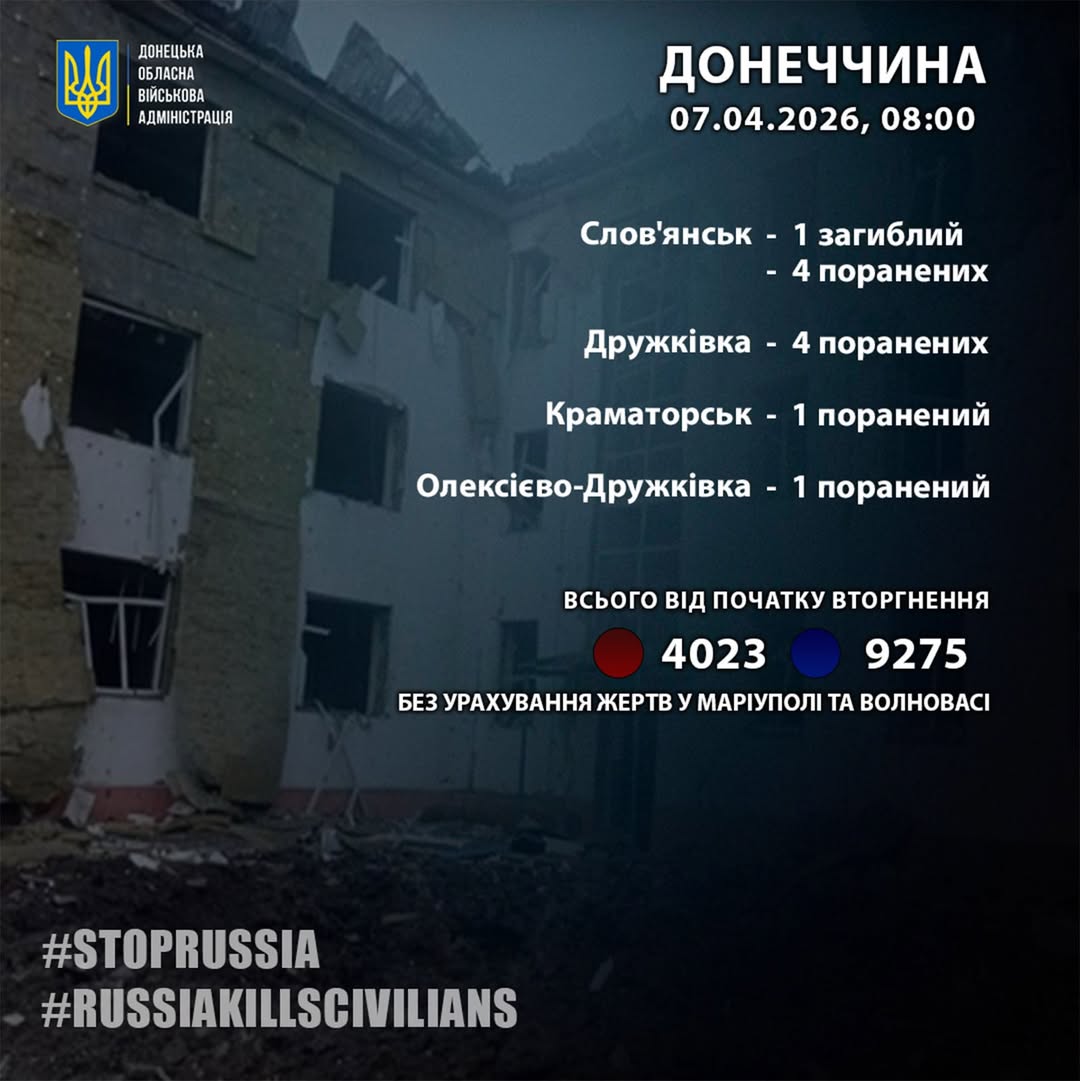 Російські загарбники минулої доби, 6 квітня, вбили одного жителя Донецької області і ще десятьох людей поранили.