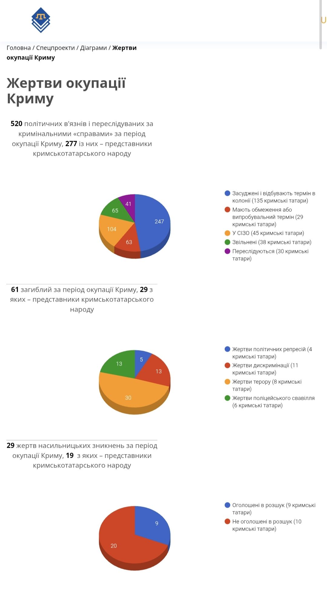 "Станом на 15 лютого 2022 року нами було верифіковано 238 політв’язнів Криму, яких переслідують у кримінальних справах, 169 з них були представниками корінного кримськотатарського народу, а вже станом на 20 квітня 2026 року їх стало 520, 277 з яких - це представники корінного народу України. У катівнях (колоніях та СІЗО) сьогодні перебуває 351 особа, 180 з них - це кримські татари", - написала вона.