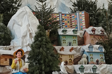 У столиці на Поштовій площі скульптури малюків-засновників Києва - Кия, Щека, Хорива та їхньої сестри Либідь - до Різдва одягли у костюми янгола, колядника, а також східного царя.