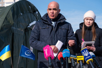 Генсекретар Ради Європи Ален Берсе відвідав одне з наметових містечок типу «Аляска» у Києві, яке для жителів столиці розгорнули після російських ударів.