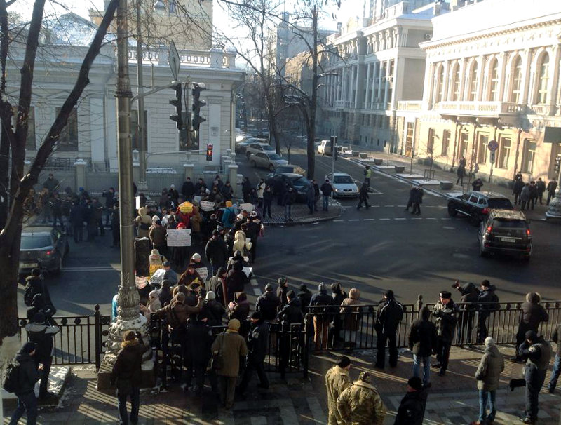 Вкладники «VAB-Банку» перекрили проїжджу частину біля ВР. Фото
