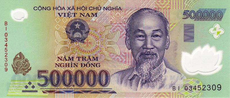 Найбільша купюра, що нині в обігу - 500 000 в'єтнамських донгів