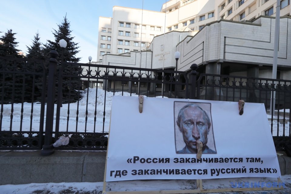 Він додав, що причиною регулярного проведення цих пікетів під стінами КСУ є те, що "зараз йде українсько-російська війна, і ідеологією цієї війни є поширення так званого "руського миру".