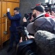 У руках вони тримають прапори з політичною символікою Нацкорпусу та плакати з гаслами "Розвідка ФСБ під куполом АП", "Служба розвідки Ліпецької фабрики" та "Зрада під підписом Порошенка".