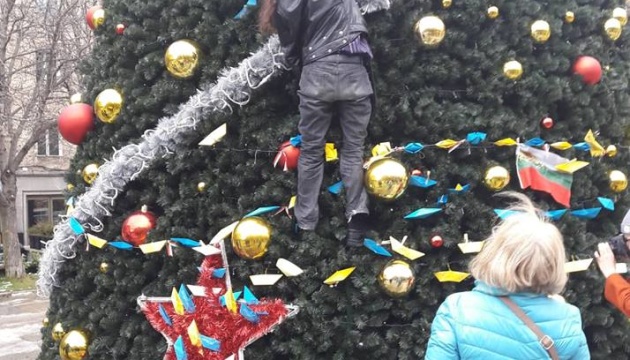 «Організаторами виступили болгарські громадяни, яких обурив факт, що ялинка, подарунок від Москви, встановлена перед знаковою церквою Болгарії – храмом Святої Неділі. До акції долучилися представники української громади, діаспори», - розповіли в організації.