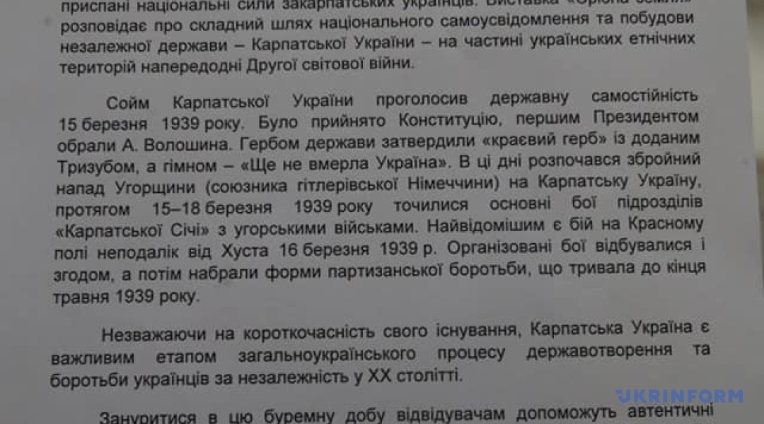 В інформуправлінні ВР додали, що більше інформації про президентську республіку Карпатська Україна можна отримати з планшетної виставки "Срібна земля", підготовленої силами Фундації імені Олега Ольжича.