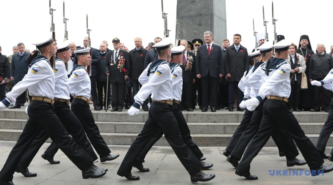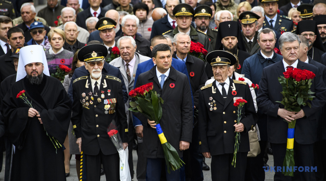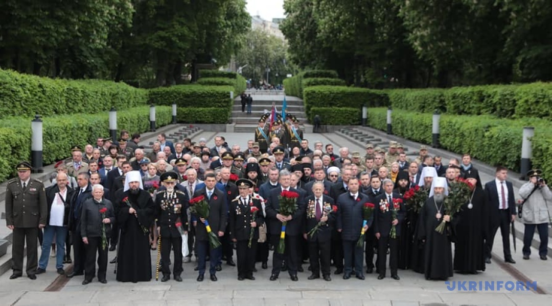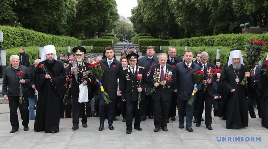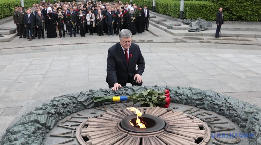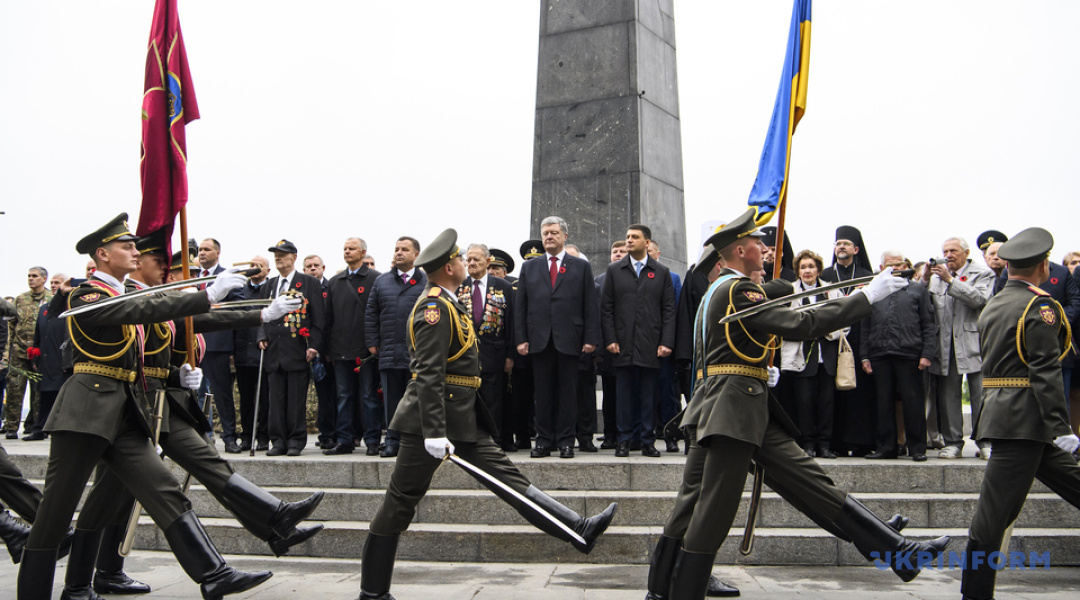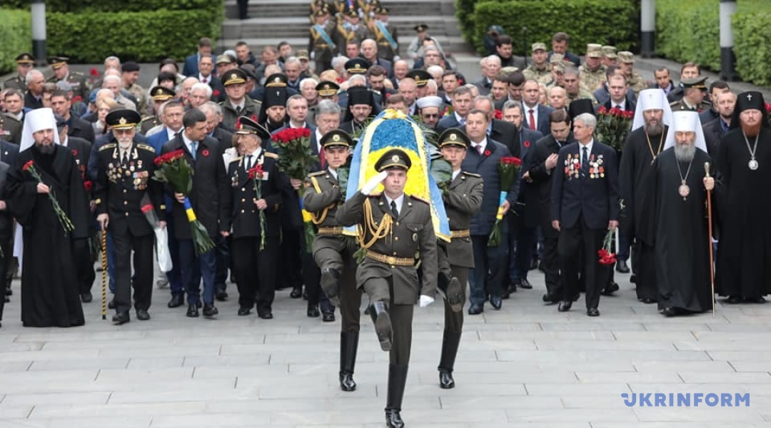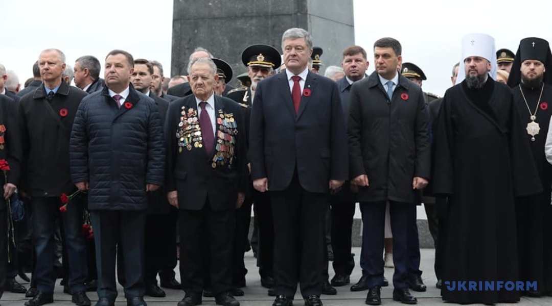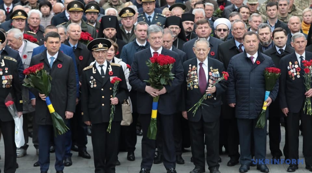 Президент Петро Порошенко та Прем’єр-міністр Володимир Гройсман взяли участь у церемонії покладання квітів до могили Невідомого солдата (у парку Вічної Слави) у Києві.