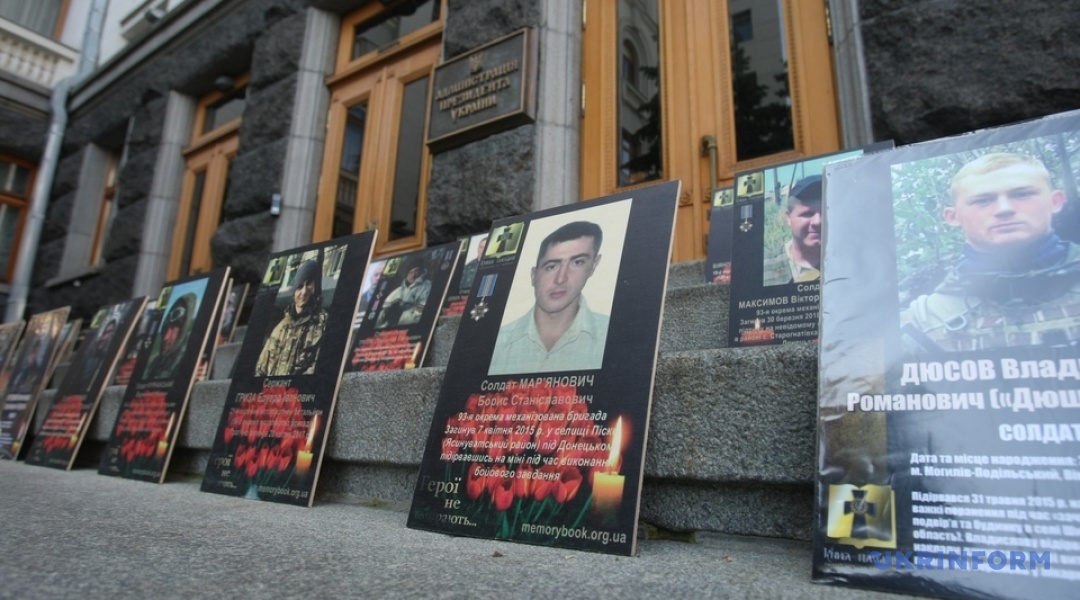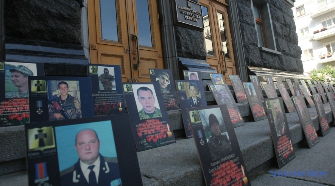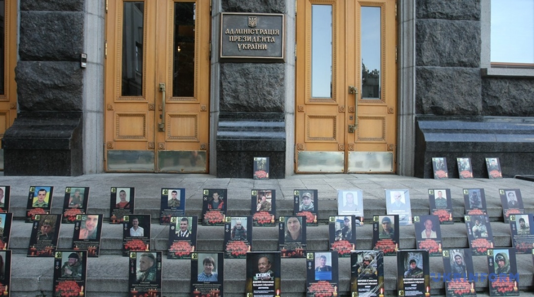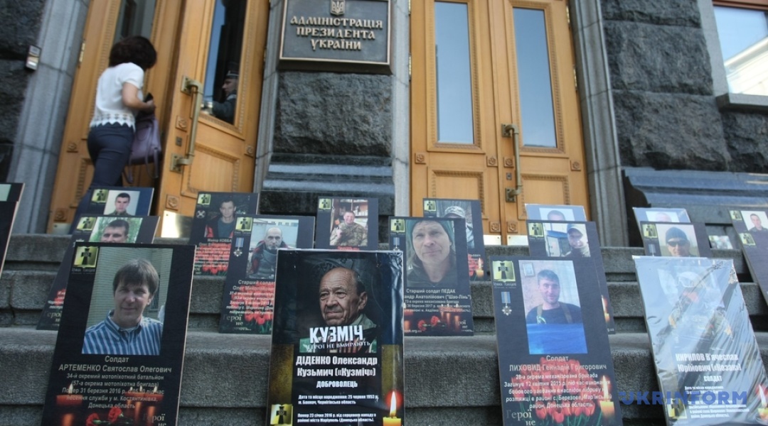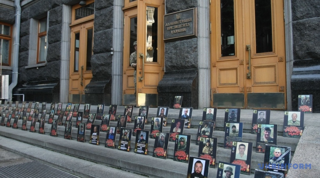 На сходах при вході в будівлю АП, а також довкола приміщення розміщені фотографії кількох сотень загиблих бійців на Донбасі.