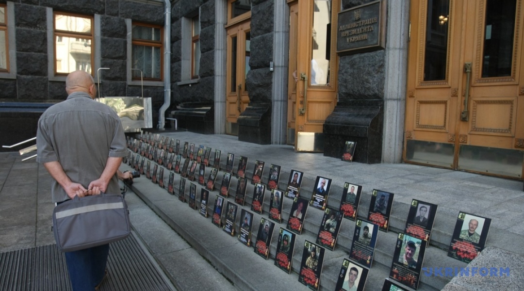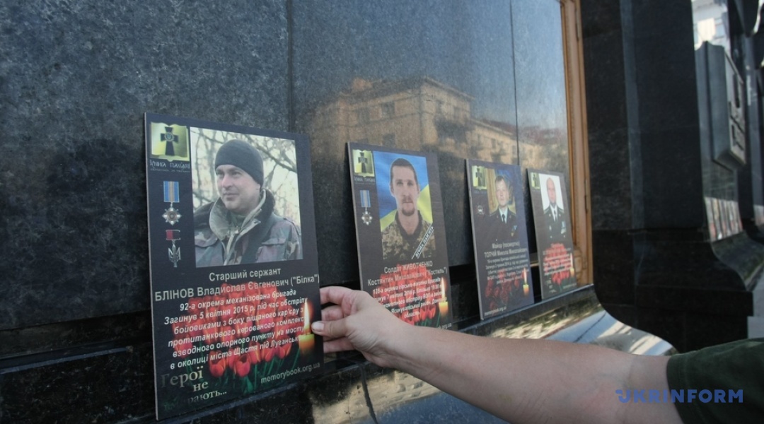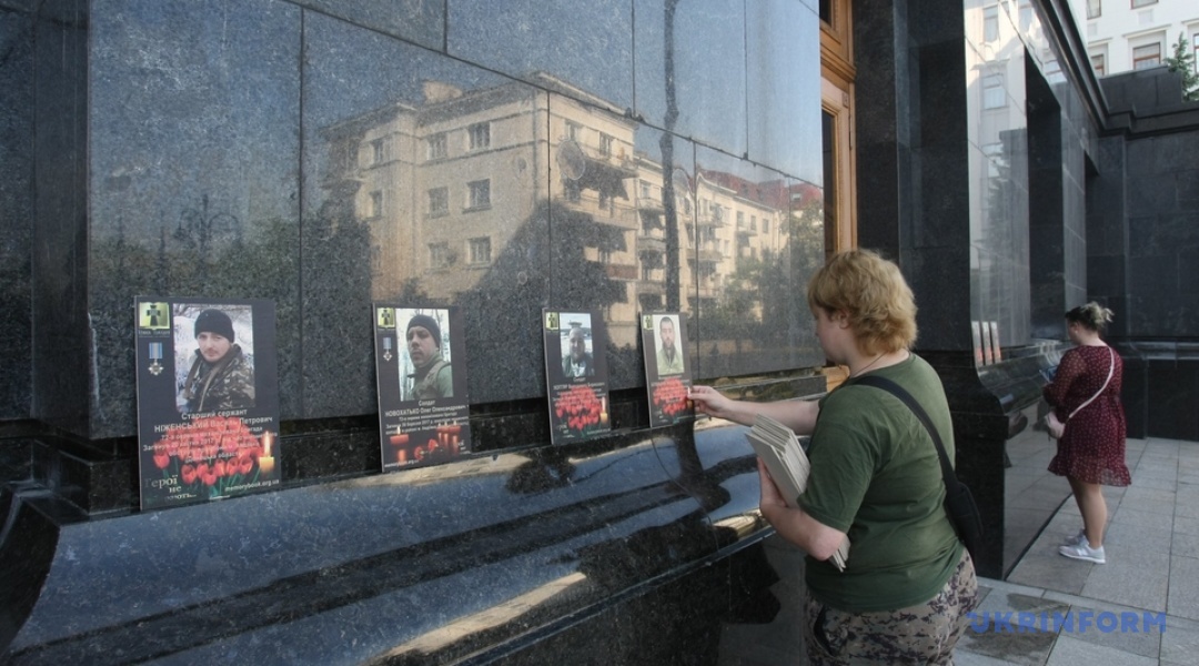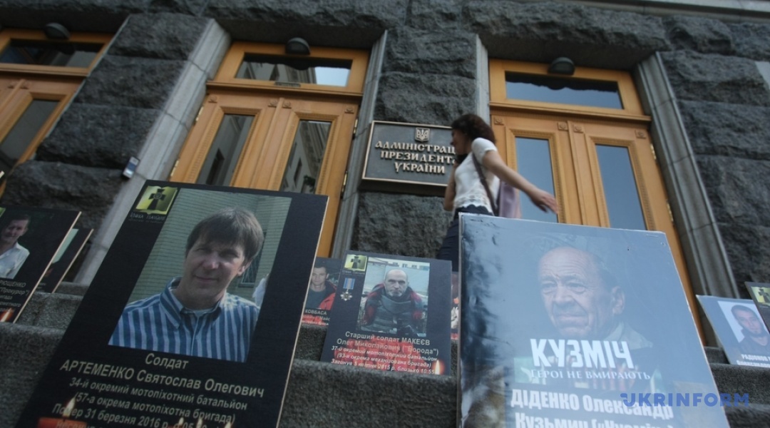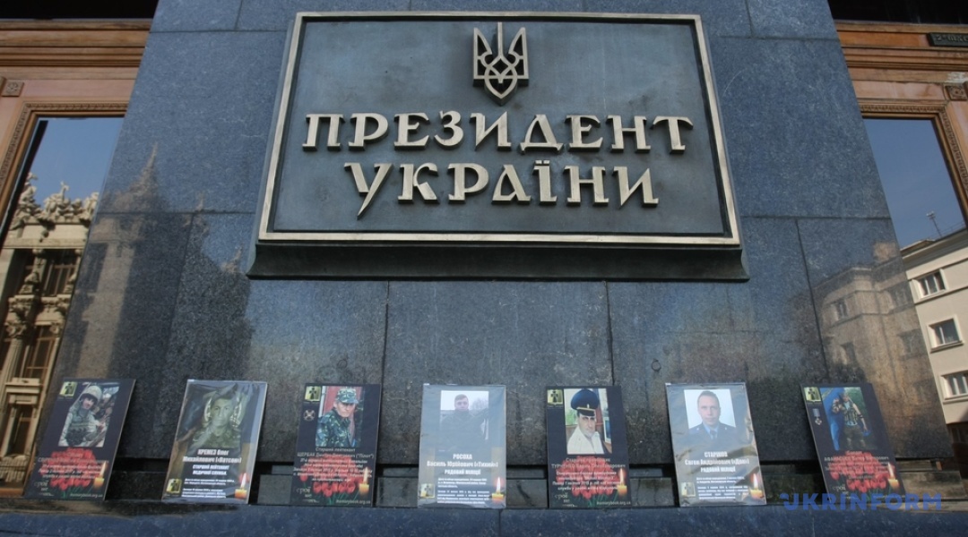 На сходах при вході в будівлю АП, а також довкола приміщення розміщені фотографії кількох сотень загиблих бійців на Донбасі.