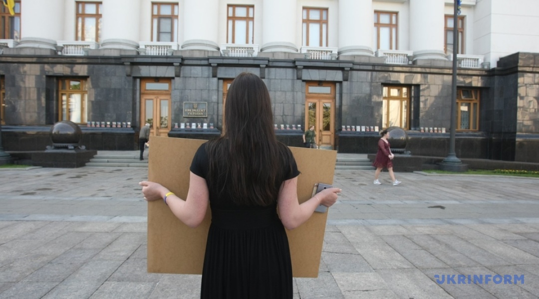 Як повідомляє кореспондент Укрінформу, жінок зустрів один із працівників АП і запросив на зустріч з Президентом Володимиром Зеленським.