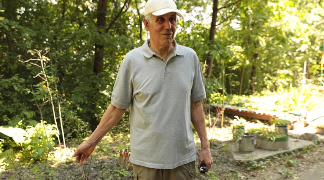 “Я вірю, що кожна людина може власним прикладом і діями надихнути інших змінювати світ навколо нас”, - говорить 78-річний київський пенсіонер Геннадій Нікітін. З Геннадієм Андрійовичем, високим худорлявим чоловіком, який виглядає років на 10 молодшим за свій «паспортний» вік, кореспонденти Укрінформу зустрілися по полудні біля метро Арсенальна. Геннадій Андрійович знімає сонячні окуляри, і одразу привертає особливим виразом зацікавленості в очах — такий буває в людей, які по-справжньому “горять” якоюсь справою. Для Геннадія Нікітіна ця справа - догляд за невеличкою ділянкою землі, неподалік Лаври, на занедбаних схилах Дніпра. Якщо дивитись на Лівий берег, то це правіше парку Вічної Слави, ближче до Лаври. Він робить це абсолютно безкорисливо, адже його ніхто не просив і нічого не платить за такі старання. Але чоловіка надихає реакція знайомих і раптових прохожих, які долучаються до його справи — хтось квіти з дачі привезе, а хтось — поділиться інструментами чи просто із вдячністю потисне руку. Тож і кореспонденти Укрінформу вирішили познайомилися з ентузіастом, подивитися на результати його трудів.
