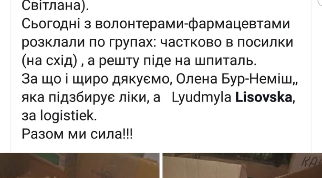Очі пані Людмили наповнюються сльозами. Ледь стримуючись, вона продовжує розповідати, як збирали і передавали гуманітарну допомогу, ліки та одяг. Допомагали не лише пораненим у госпіталях, а й вимушеним переселенцям та школам.