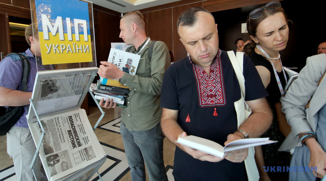 У рамках форуму працюють виставки літератури на тему подій в Донбасі та Криму, причому велику кількість книг передано у подарунок учасникам форуму.