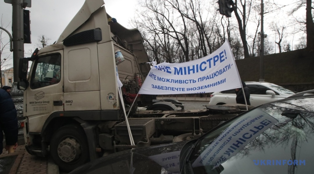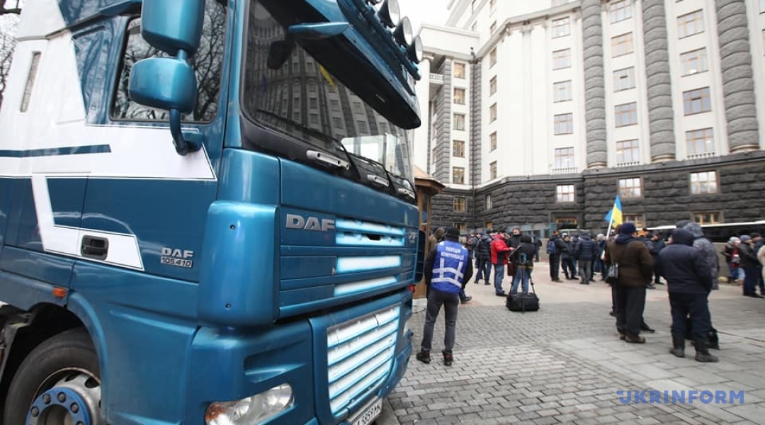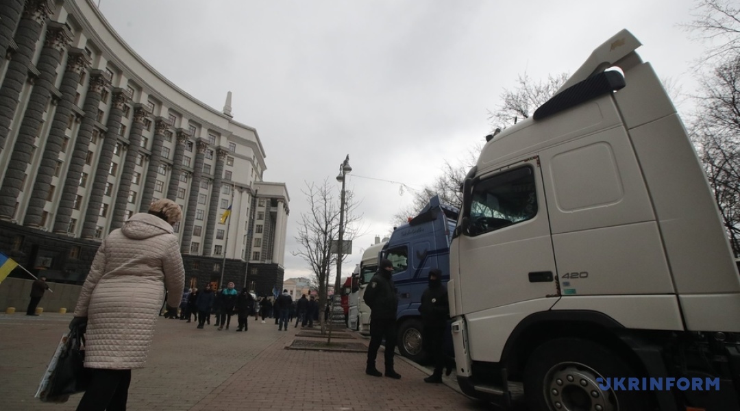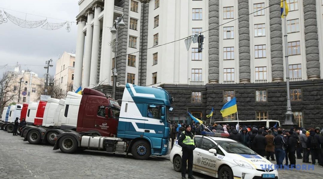 Під Кабміном мітингують міжнародні перевізники на фурах