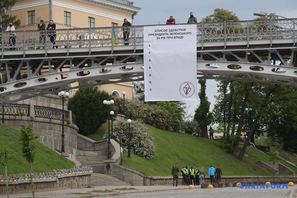 Як повідомляв Укрінформ, організатором акції «Стоп реванш» є Рух опору капітуляції. Акцію приурочено до річниці президентства Зеленського.