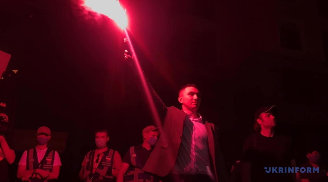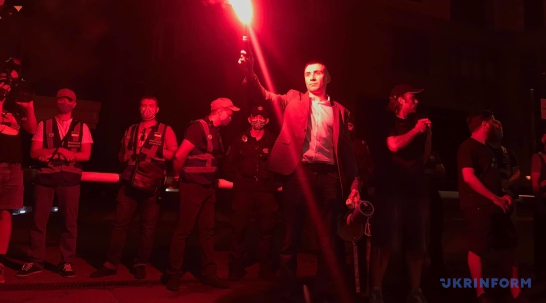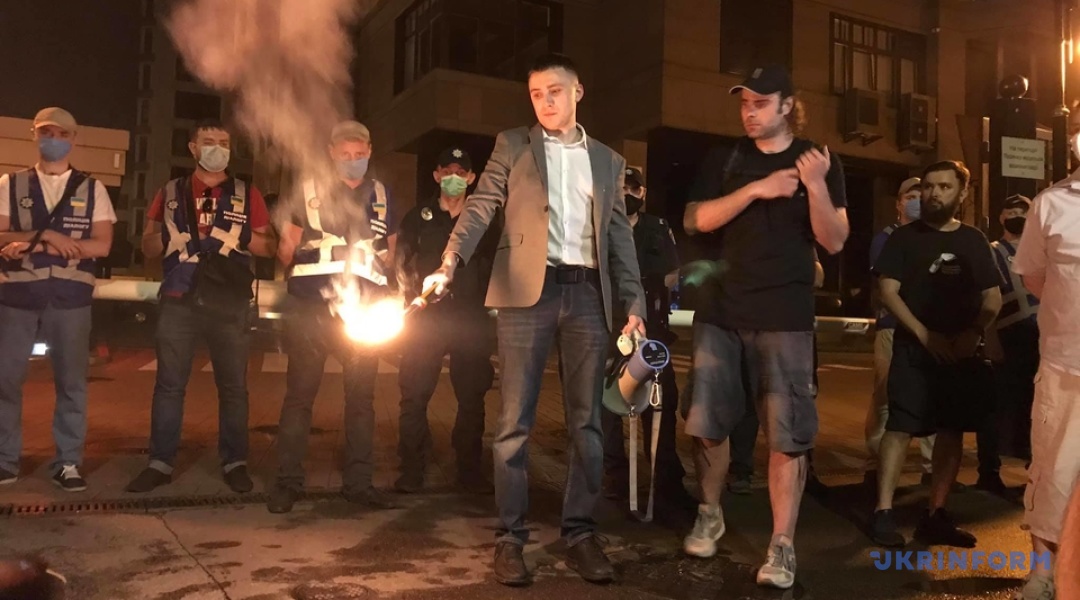 Стерненко та активісти запалили фаєри під будинком Зеленського