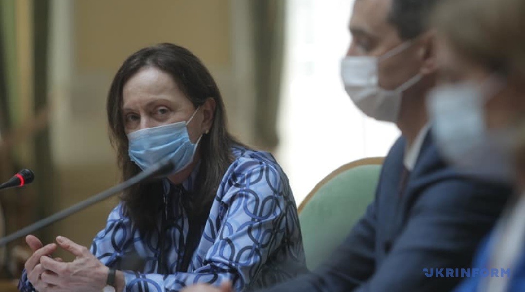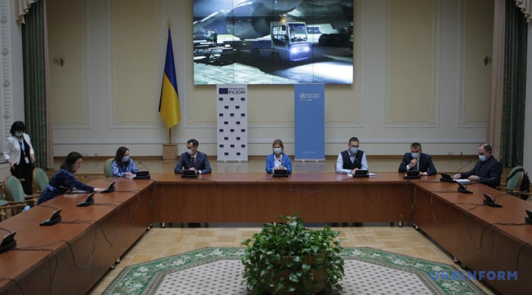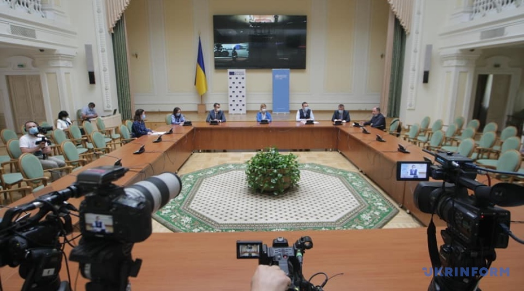 Пресбрифінг з нагоди передачі ЄС та ВООЗ допомоги 50 медзакладам / Фото: Євген Котенко, Укрінформ