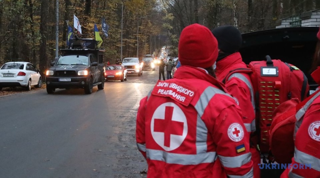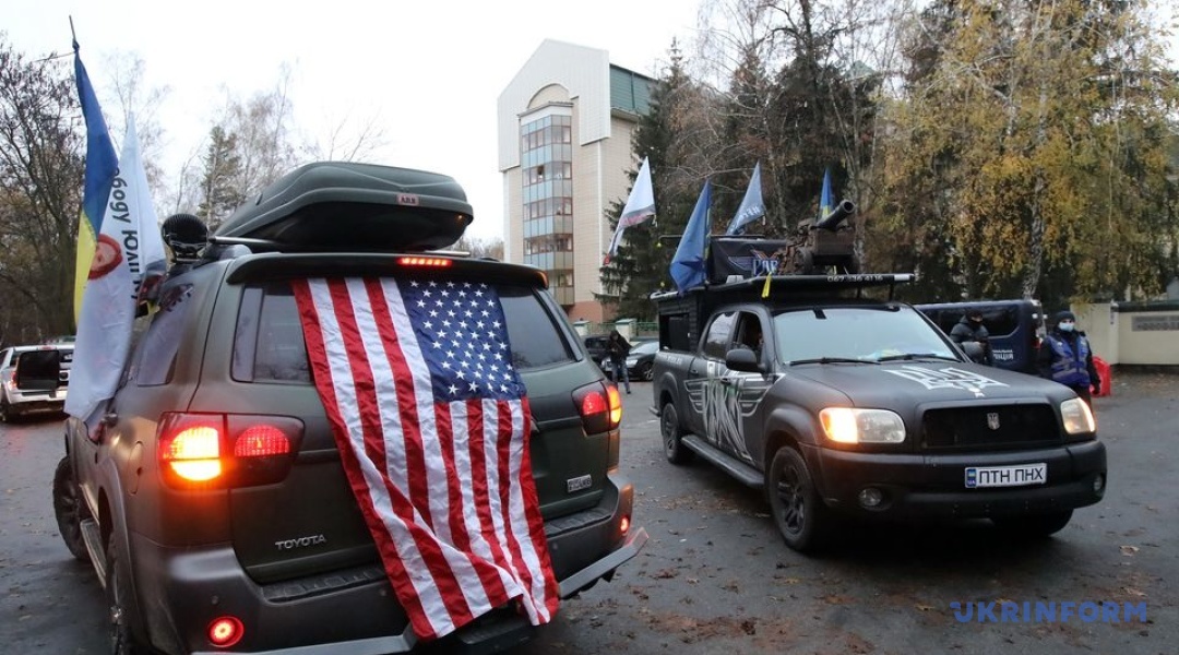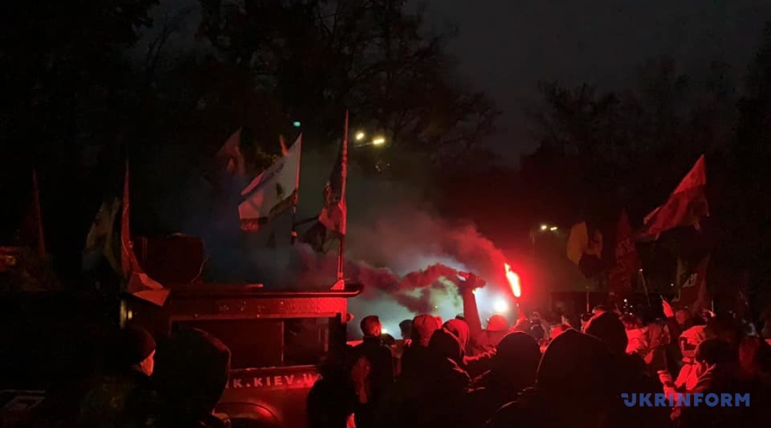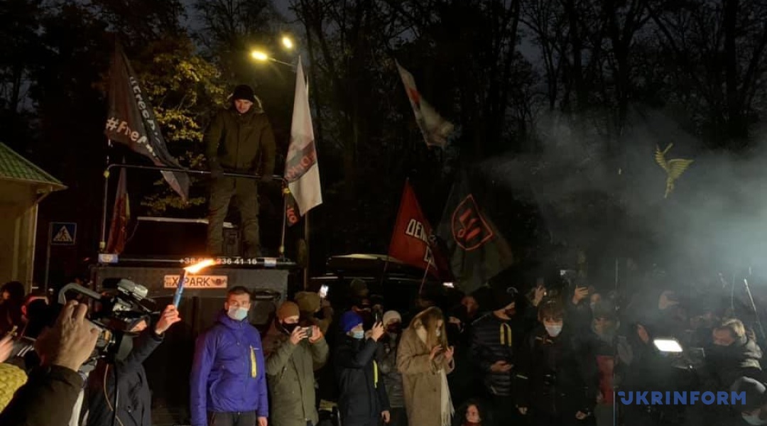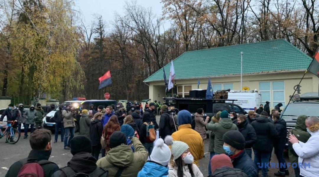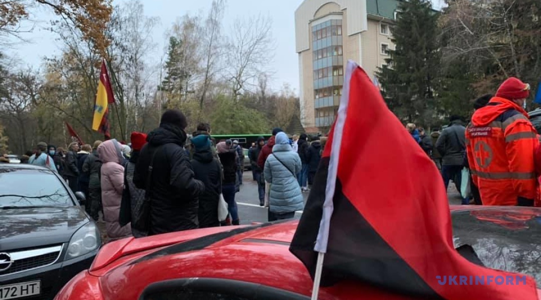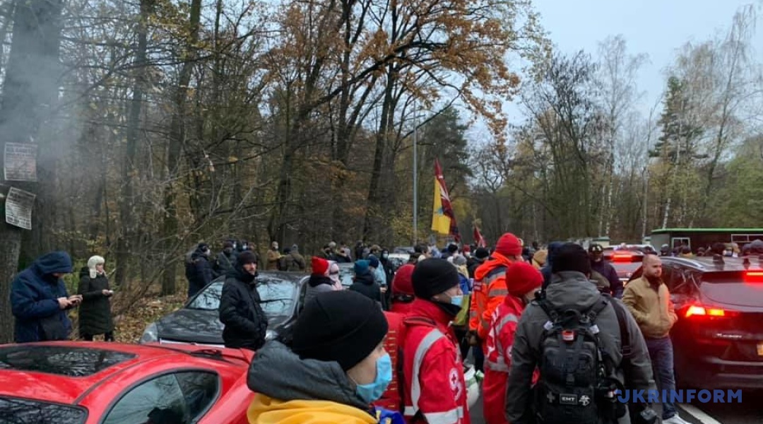 Мітингувальники, серед яких і ексміністр інфраструктури Володимир Омелян, прибули до лікарні у складі автопробігу. Вони зібралися біля прохідної лікарні. Поруч чергують поліцейські. Ситуація наразі спокійна.