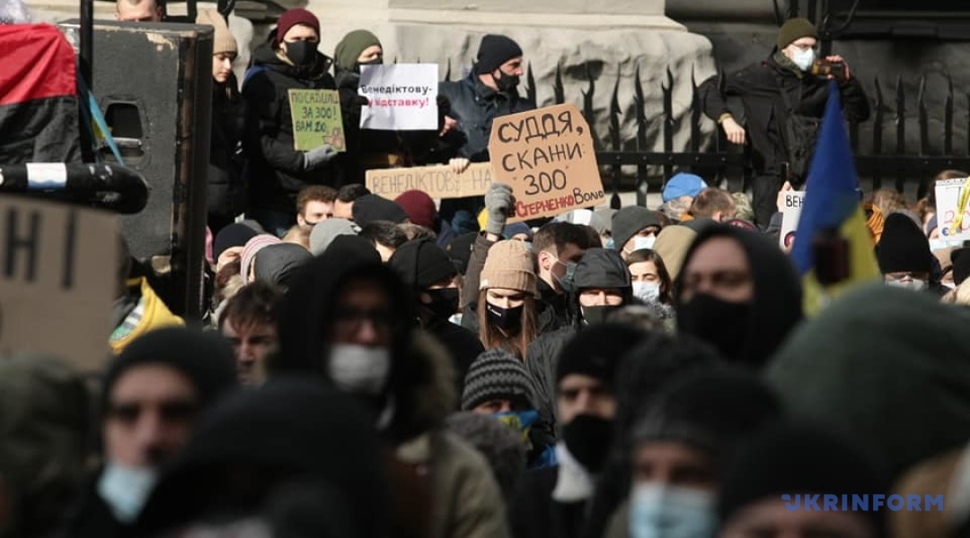 Учасники акції вимагають негайно звільнити політв’язня Сергія Стерненка і оновити судову систему, а саме: перезапустити Вищу раду правосуддя, обравши нових членів у прозорому конкурсі.