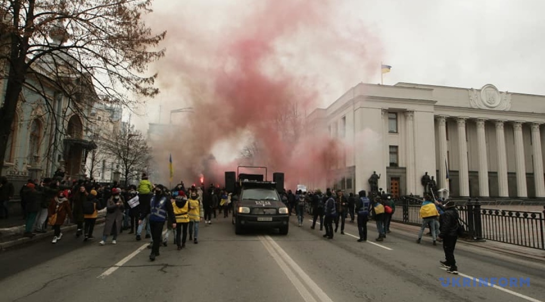 Під час акції 23 лютого у Києві відбулися сутички між активістами та поліцією.