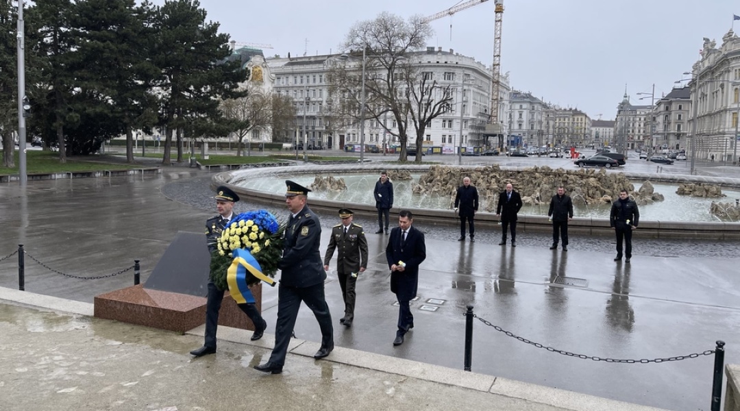 Урочиста церемонія покладання вінків відбулася на площі Шварценбергплатц у центрі Відня, де розташований пам’ятник воїнам радянської армії, загиблим під час звільнення Австрії від нацизму.