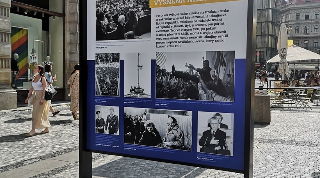 Епіграфом виставки «Україна – 30 років свободи» стали слова Григорія Сковороди з вірша De Libertate: «Що є свобода? Добро в ній якеє? Кажуть, неначе воно золотеє? Ні ж бо, не злотне: зрівнявши все злото, Проти свободи воно лиш болото». На фотографіях зафіксовано, зокрема, радість від вимріяної незалежності, емоції наших чемпіонів, здобутки та досягнення України, її найвідоміші природні та культурні пам’ятки, події українських революцій та боротьби українців проти російської агресії. Окремі стенди присвячено історії чесько-українських взаємин, зокрема, ролі в них Вацлава Гавела, найяскравішим моментам з життя чеських українців.