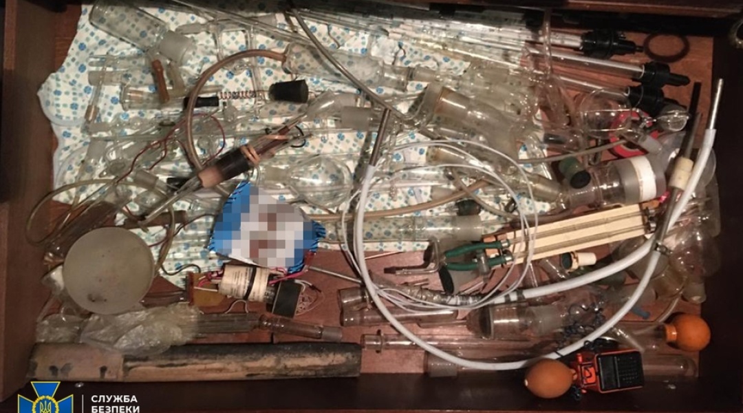Під час обшуків за місцем проживання зловмисника правоохоронці виявили велику кількість тротилу та інших вибухонебезпечних речовин, компоненти для виготовлення саморобних вибухових пристроїв, бойові гранати із запалами, 10 одиниць вогнепальної зброї з глушниками, майже 2 тисячі набоїв різного калібру, комплектуючі до вогнепальної зброї, а також станкове та спеціалізоване лабораторне обладнання.