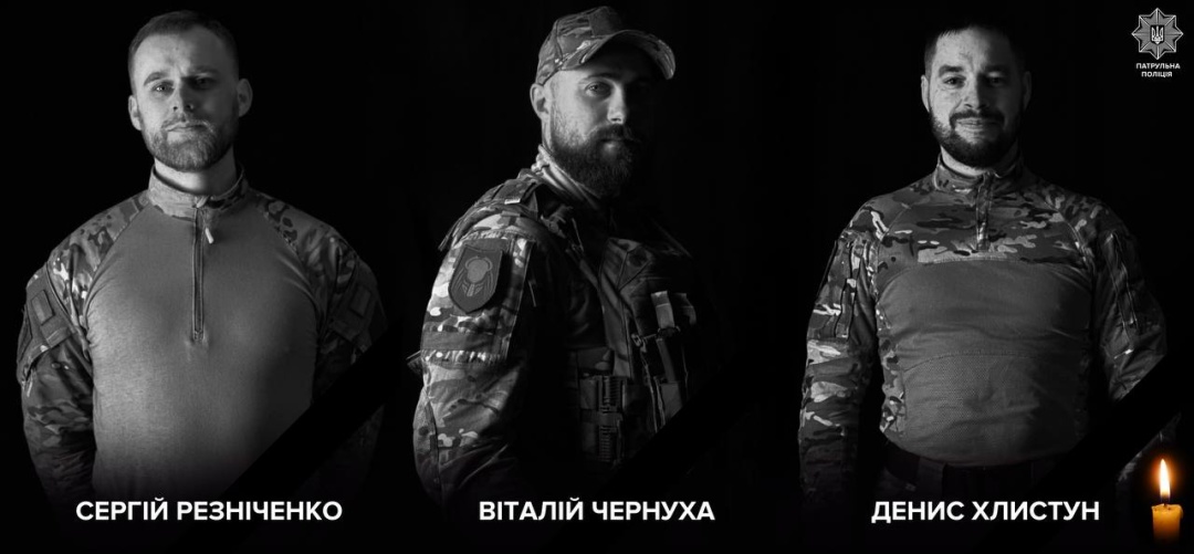 Під час виконання бойового завдання у п’ятницю загинули троє патрульних поліцейських - Денис Хлистун, Сергій Резніченко і Віталій Чернуха.