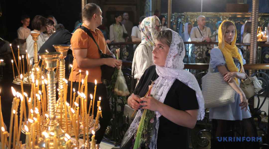 У православних храмах на Трійцю виконується одна з найурочистіших та найвеличніших служб у році: підлогу храму устеляють свіжоскошеною травою, ікони прикрашають гілками дерев. На всенощній уперше за 50 днів після Великодня лунає дивовижна молитва, звернена до Святого Духа: "Царю Небесний, Утішителю, Душе істини...".