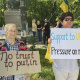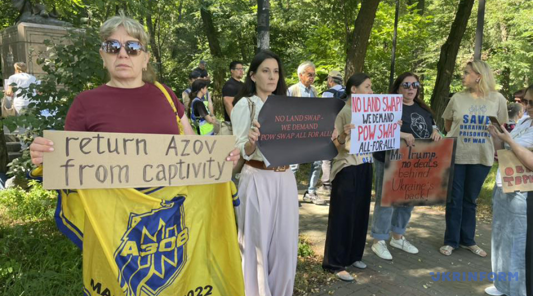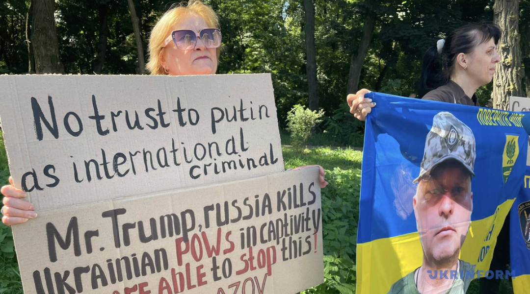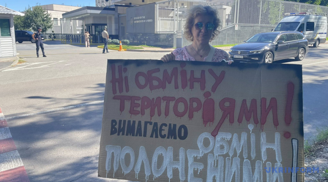 Мітингувальники закликають Трампа, «який взяв на себе роль миротворця», в ході переговорів замість обговорення «обміну українських територій», порушити питання обміну полоненими за формулою «всіх на всіх, без винятків».