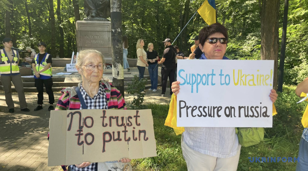 «США взяли на себе роль миротворця, і тепер саме час довести це діями: шлях до миру в Україні не може вирішуватися без України та за її рахунок», - сказала одна з організаторок мітингу.
