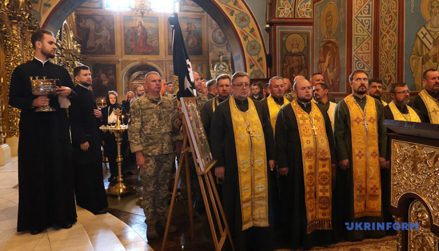 Чин освячення ікони відбувся після молебню за Перемогу над ворогом і справедливий мир в Україні, повідомляє кореспондент Укрінформу.