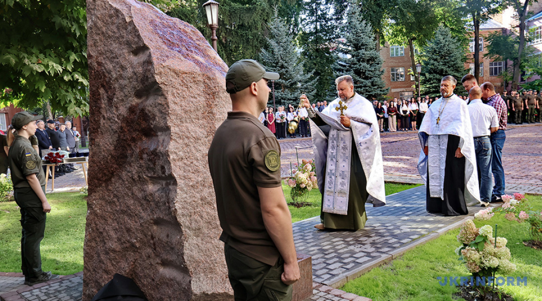 Пам’ятник освятив і провів панахиду за полеглими героями настоятель Спасо-Преображенського храму при ДКВС, підполковник капеланської служби отець Костянтин Холодов. До підніжжя меморіалу лягли квіти, тричі пролунав салют.