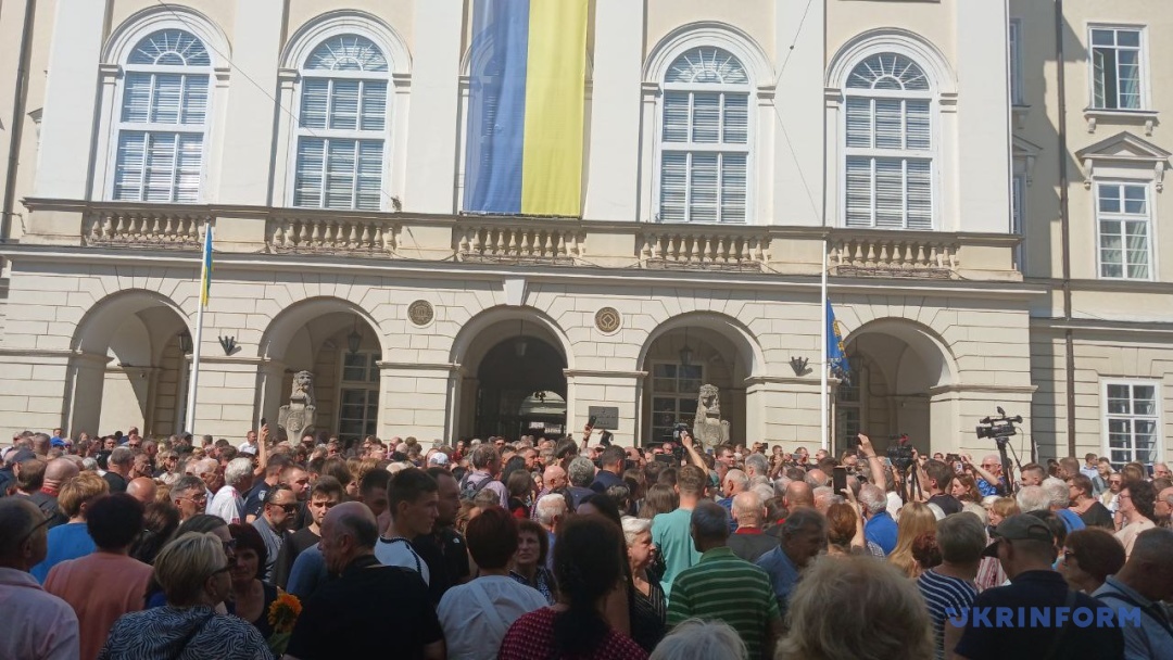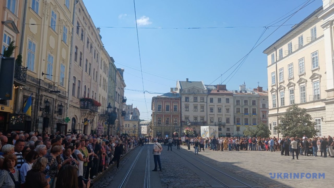 Після служби в архикатедральному соборі Святого Юра УГКЦ у Львові траурний кортеж вирушив на площу Ринок. Тут о 13:30 відбулося загальноміське прощання. Тисячі людей прийшли провести Андрія Парубія в останню путь.