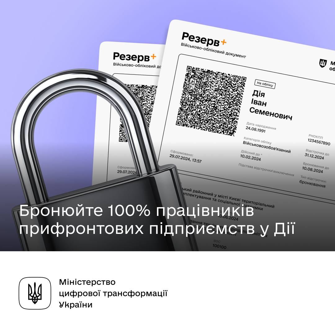 «Працюєте в зонах можливих або активних бойових дій і маєте статус критично важливого підприємства? Бронюйте до 100% співробітників на порталі «Дія» — швидко, прозоро та за кілька кліків», - йдеться в повідомленні.
