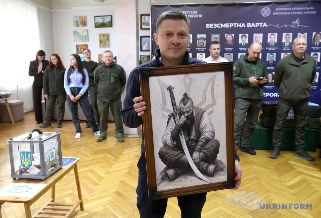 Лотами аукціону стали пів сотні робіт ув’язнених, в яких автори відтворили своє бачення боротьби України за незалежність на полотні та у дереві. На прохання засуджених кошти від продажу їхніх робіт передадуть родинам загиблих на війні співробітників кримінально-виконавчої служби.