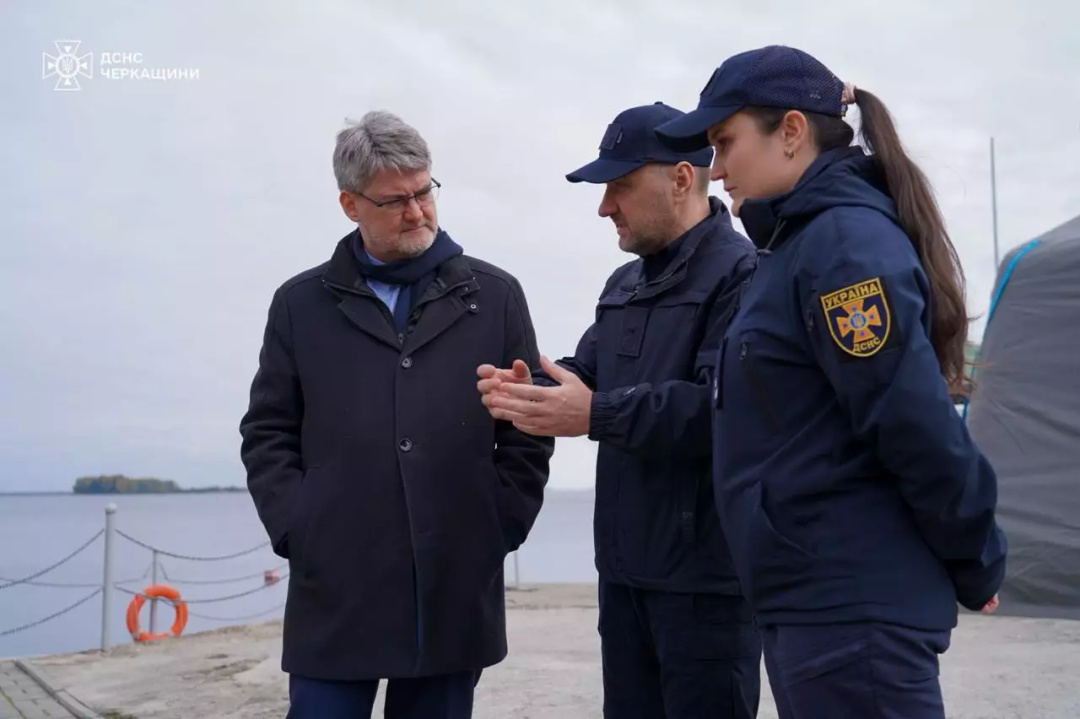 У Черкасах перший заступник голови ДСНС Віталій Миронюк разом із разом із Надзвичайним і Повноважним Послом Французької Республіки в Україні Гаелем Весьєром підбили підсумки другого етапу навчання для водолазів-саперів підрозділів ДСНС із різних областей у межах реалізації проєкту «Посилення спроможності України у сфері протимінної діяльності» та обговорили подальшу співпрацю.