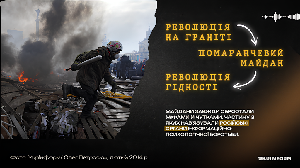 Проте Майдани завжди обростали міфами, чутками та змовницькими історіями, частину з яких інспірували російські органи інформаційно-психологічної боротьби, аби зруйнувати єдність. Розбираємо найпоширеніші конспірологічні сюжети разом з Українським інститутом національної пам’яті (УІНП).