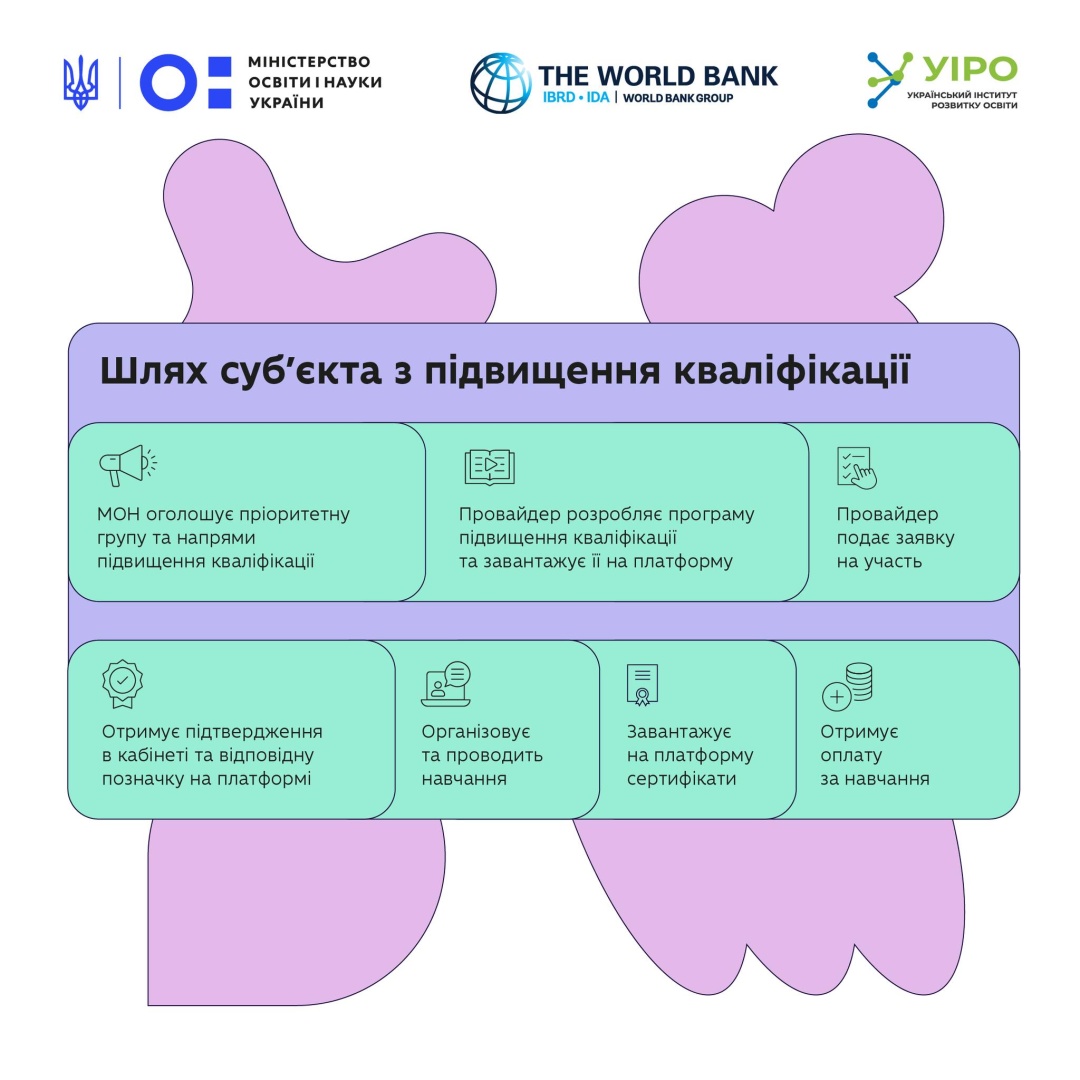 Зазначається, що реалізовувати курси на платформі зможуть суб'єкти, які відповідають вимогам постанови КМУ №800 та чиї програми пройшли верифікацію УІРО: заклади освіти та їхні підрозділи, наукові установи, громадські чи приватні організації (юридичні особи), ФОПи, які офіційно надають послуги з підвищення кваліфікації.