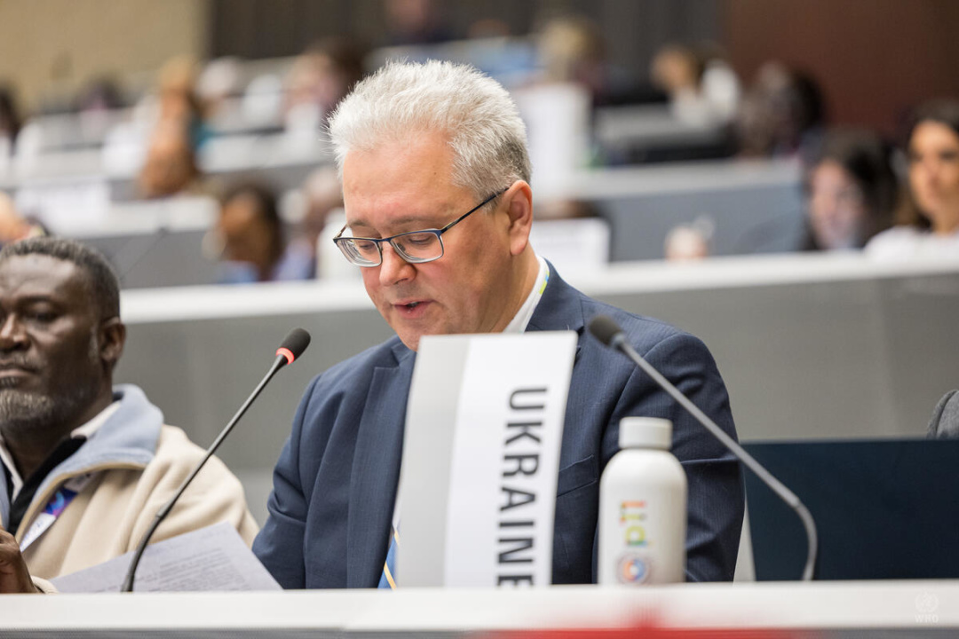 Під час відкриття сесії Постійний представник України при Відділенні ООН та інших міжнародних організаціях у Женеві Євгеній Цимбалюк виступив із промовою, в якій засудив російську агресію та наголосив на її руйнівному впливі на здоров’я населення, медичну інфраструктуру та психічний стан громадян, що, зокрема, сприяє зростанню ризику споживання тютюнових виробів.