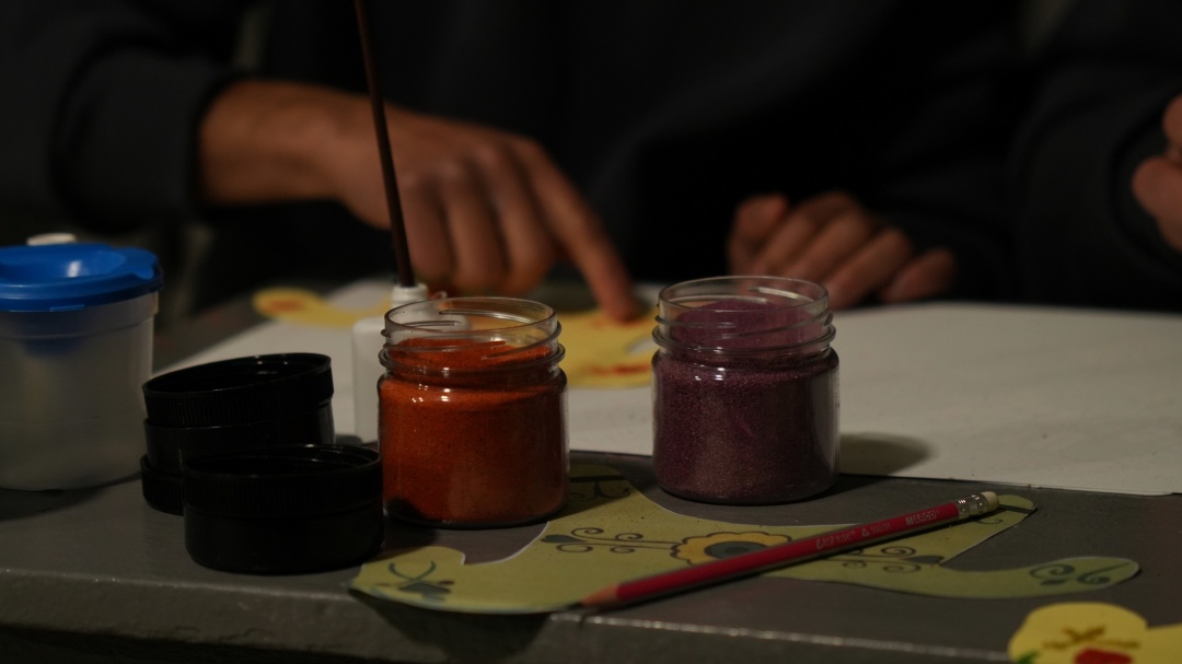 Ще хлопці тут проходять тренінг «Думай вільно: життя без стереотипів», малюють картини у художній школі, вишивають, готують обереги захисникам на передову. Коли лунає сигнал повітряної тривоги, активності проходять у добре облаштованому укритті. Тут обладнано спальні приміщення для всіх вихованців. Ми теж побували в укритті й побачили, як діти опановують техніку малювання піском.