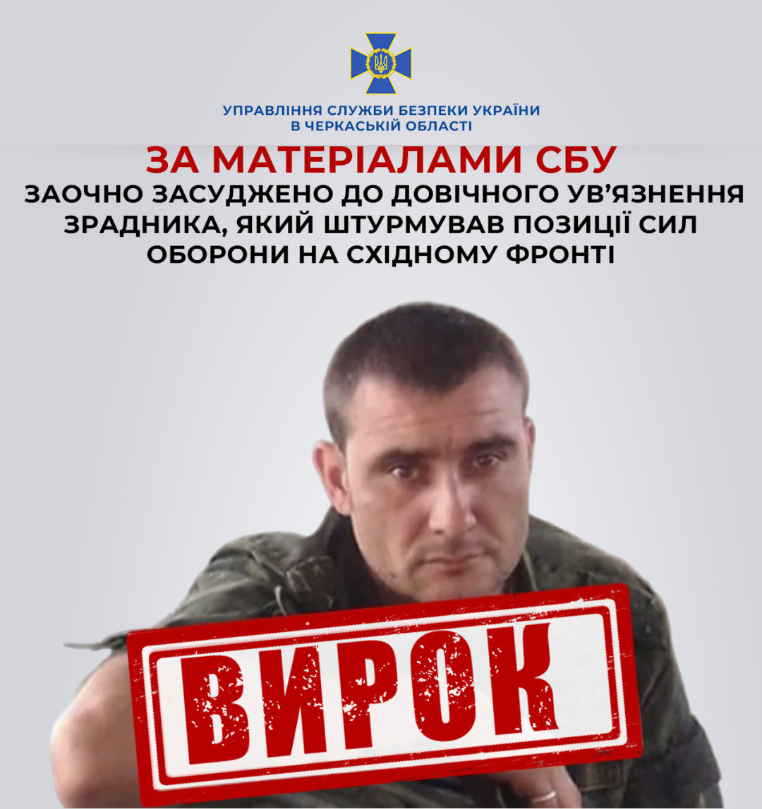 «Заочно засуджено до довічного ув’язнення зрадника, який штурмував позиції Сил оборони на східному фронті. Як встановило розслідування, зловмисник від початку повномасштабної війни добровільно "мобілізувався" до "100-ї окремої мотострілецької бригади", яка входить до збройних формувань РФ», - йдеться у повідомленні.