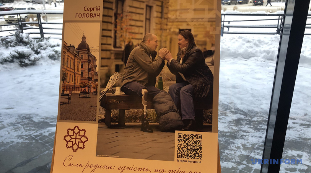 "Ми таким чином хотіли показати, що наші герої - це, звісно, самі ветерани. Але для них дуже важливою є підтримка їхніх родин і під час війни, і після повернення, особливо, якщо це військові, які втратили кінцівки. Під кожною фотографією військового із сім'єю є QR-код. Відкривши його, можна прочитати історію кожного ветерана, його військовий шлях, його позивний, життєве кредо і найголовніше, хто його підтримував", - розповіла організаторка заходу, директорка департаменту соціальної політики Чернівецької міської ради Наталія Фрунзе.