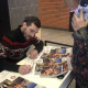 Військовий Андрій Бакрев на презентацію календаря прийшов разом із дружиною та двома донечками. Діти із радістю розглядають стенд зі сторінкою календаря, на якому вони усі разом сфотографовані.