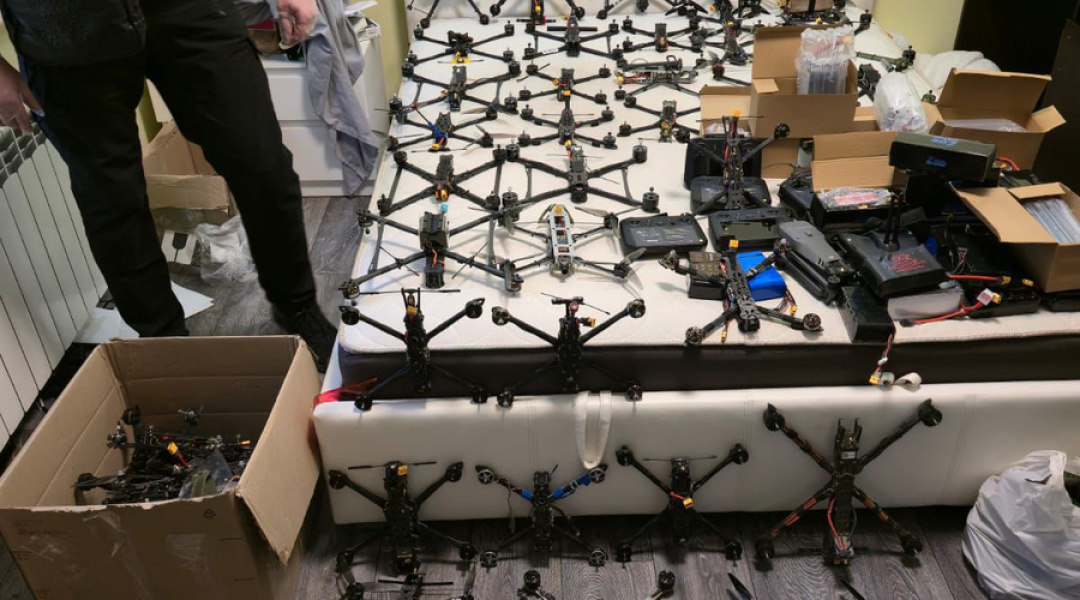 За місцем проживання фігуранта правоохоронці вилучили 549 дронів, 277 акумуляторів до них та інше спеціальне обладнання, а також понад 80 кг вибухової речовини, майже 2,5 тисячі електродетонаторів, мобільний телефон, ноутбук і $74 тисячі.