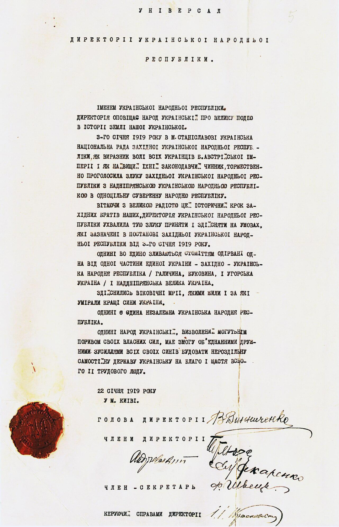 Акт злуки 22 січня 1919 року засвідчив незламну волю українців жити в єдиній державі. І сталося це за два десятиліття до приєднання Західної України до Української рср. Так що це не йосиф сталін уперше об’єднав Україну, як полюбляють розповідати російські пропагандисти. Бо радянський вождь переймався передусім територіальною експансією цілого срср й аж ніяк не благом української нації (так само тоді ж москва анексувала балтійські країни й пішла війною на Фінляндію зовсім не з гуманістичних міркувань).