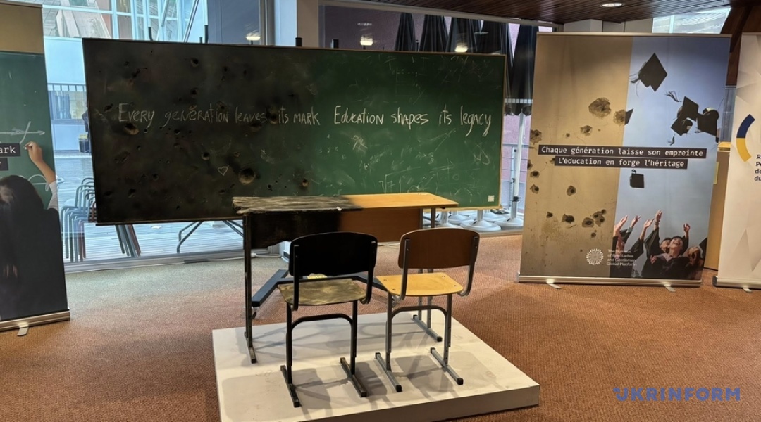 У Раді Європи виставили понівечену війною шкільну парту з України