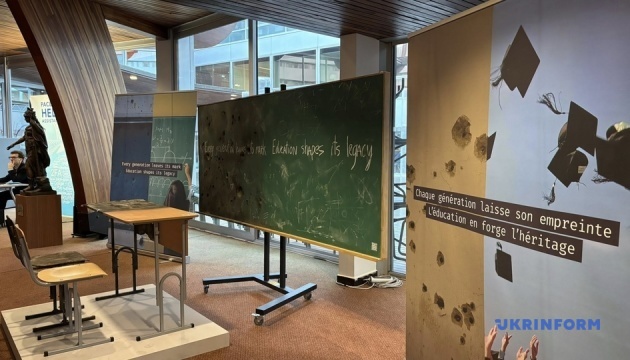 «Школи зазнають пошкоджень і руйнувань. Але Україна продовжує боротьбу й продовжує створювати умови для дітей. Сьогоднішня виставка зосереджена навколо символічного образу - шкільної парти, поділеної на дві частини. Цей образ відображає реальність України. Парта стала метафорою подвійної спадщини нашого часу - руйнування та стійкості», - сказав Точицький.